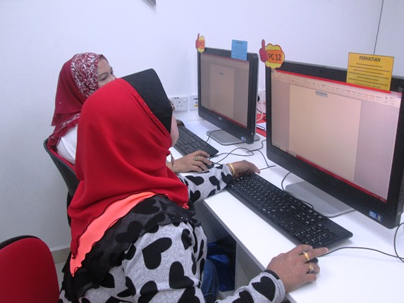 Peserta membuka Microsoft Word. Seterusnya diajar cara memasukkan gambar. Selain itu, peserta juga membina ayat berdasarkan gambar masakan yang dipilih yang mana dapat melatih peserta cara menaip.